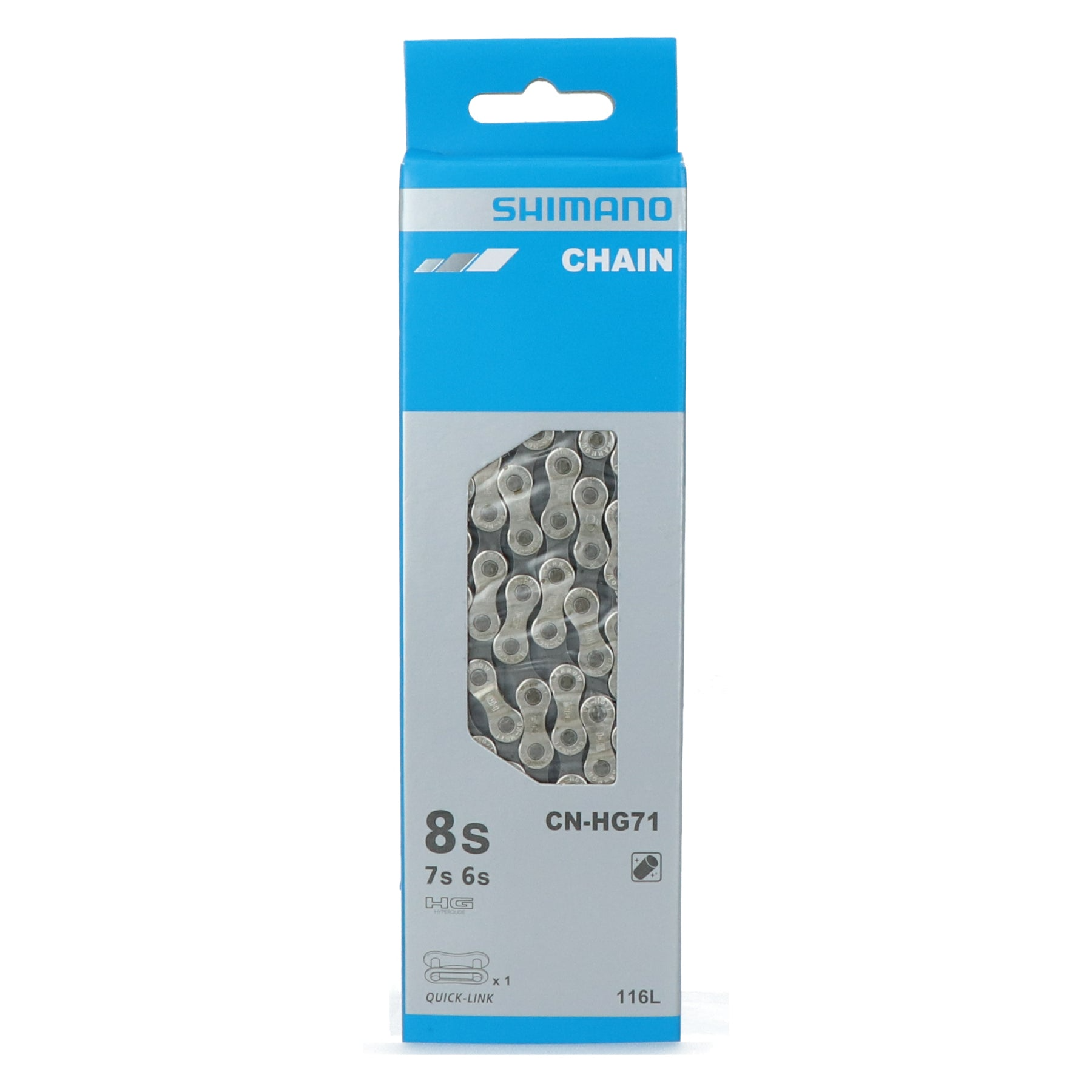 The Shimano CN-HG40 is a durable and reliable chain designed for 6, 7, and 8-speed drivetrains. Ideal for use with Shimano Altus, Acera, and Tourney components, it features Hyperglide technology for smooth and precise shifting. The included quick link makes installation and maintenance fast and hassle-free.